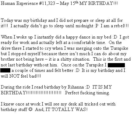 Human Experience #11,323 - MY BIRTHDAY